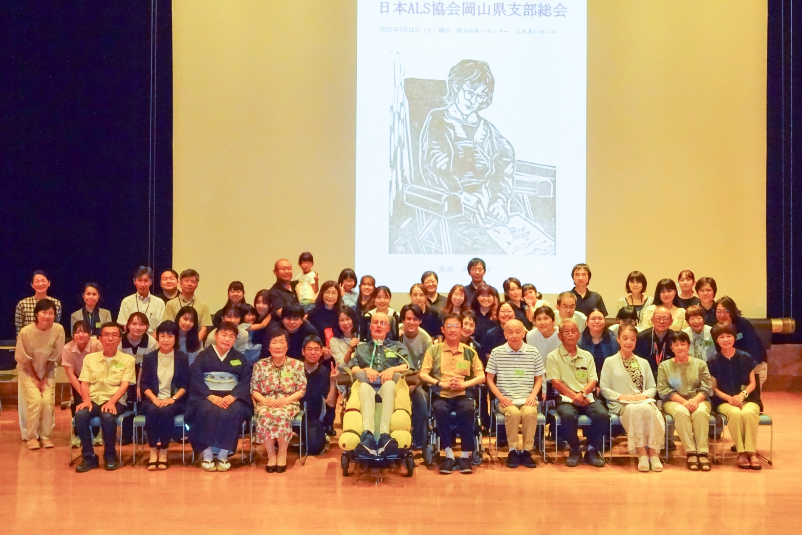 2025年7月12日13時より、岡山市の南ふれあいセンターにおいて、日本ALS協会岡山県支部定期総会を行いました。患者・家族・遺族会員の方17名、専門職・医師・関係機関の方7名、一般・ボランティアの方12名、合計36名のご参加がありました。委任状も含め、過半数の承認をいただいて、議事が無事終わりました。